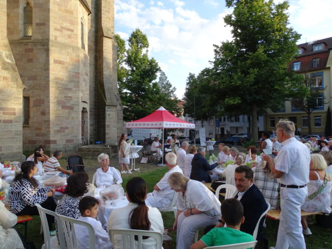 Am 21. August 2025 hieß es wieder: Weiße Kleidung anziehen, Tische eindecken und gemeinsam genießen. Unser „Dinner in Weiß“ lockte auch in diesem Jahr zahlreiche Gäste auf die Wiese neben der Christuskirche in der Lindenstraße 1 in Fulda – und so war bald kein einziger Stuhl mehr frei.   Zur Begrüßung hieß Collet Döppner…
