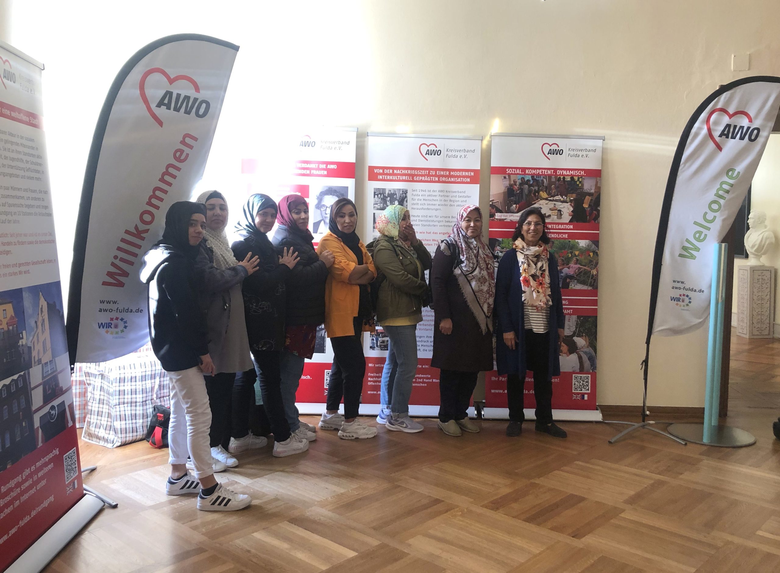 Zuerst hat sich die afghanische Frauengruppe unter der Leitung von Nasima Scharifi auf den Weg ins Stadtschloss gemacht, dann eine größere Gruppe aus dem Südend und Patenschaftsprojekt. Das repräsentative Ambiente war schwer beeindruckend. Und dass man mit den QR-Codes sogar mehrsprachige Informationen bekam, hat alle begeistert.