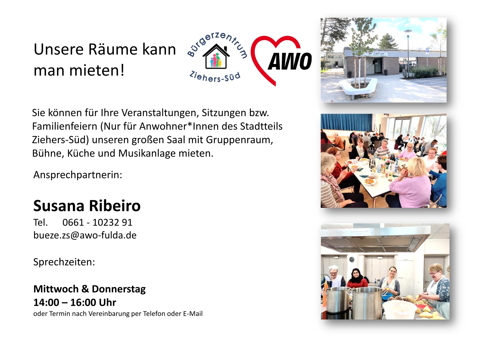 Das Bürgerzentrum Ziehers-Süd ist neben dem Begegnungsort für die Stadtteilbewohner*innen auch ein vielseitig genutzter Veranstaltungsort, der für Familienfeiern, Karnevalssitzungen und diverse weitere Gelegenheiten vermietet wird.
