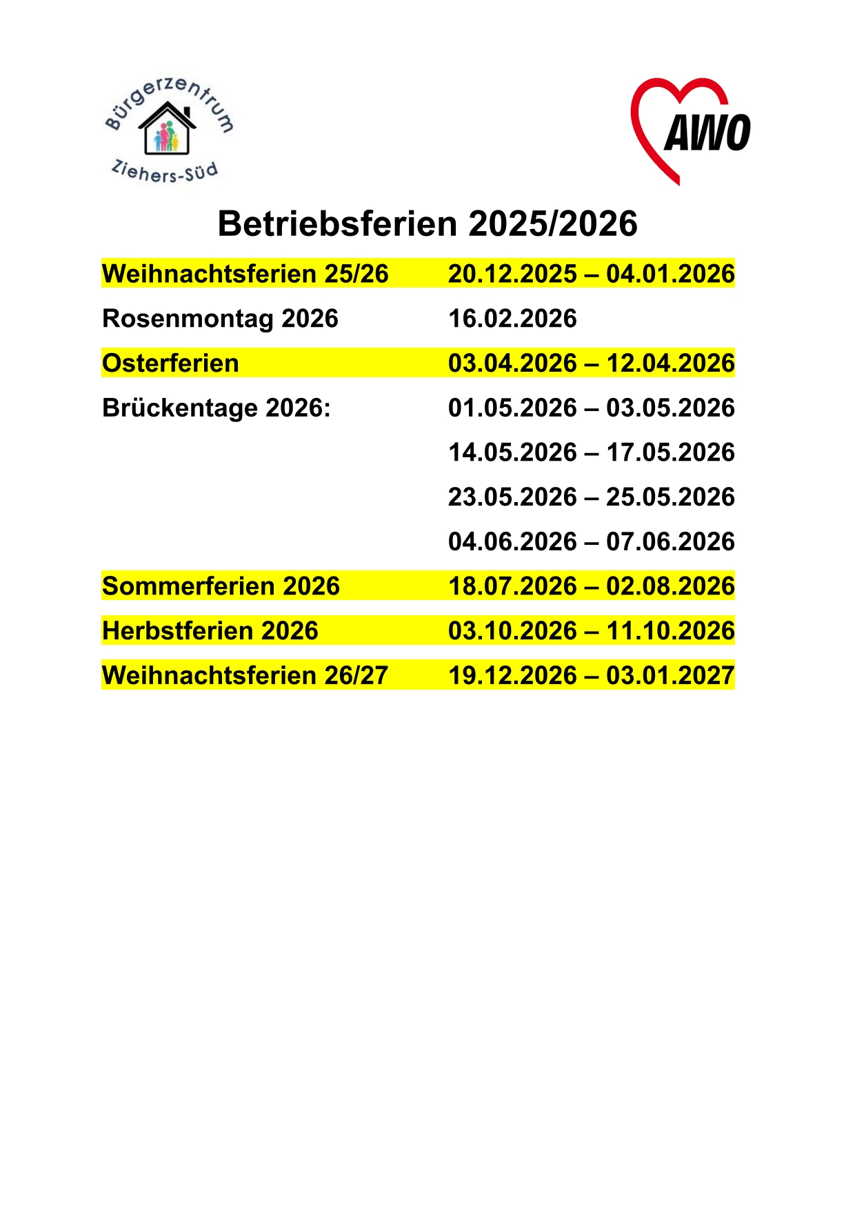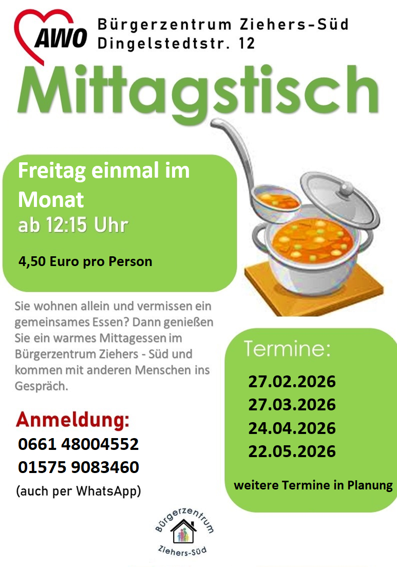 Nachfolgend finden Sie die Termine für den Mittagstisch und unsere diesjährigen Schließzeiten.