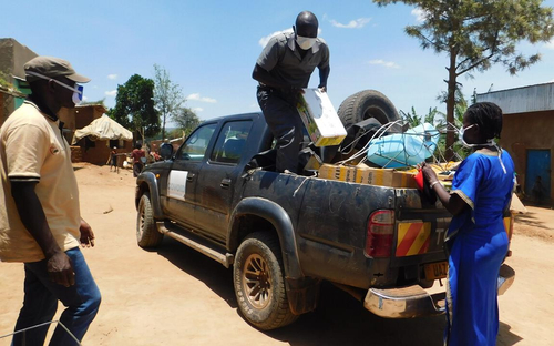 Foto: COVOID verteilt Hygienepakete im Flüchtlingslager Nakivale (Symbolbild), Quelle: AWO International