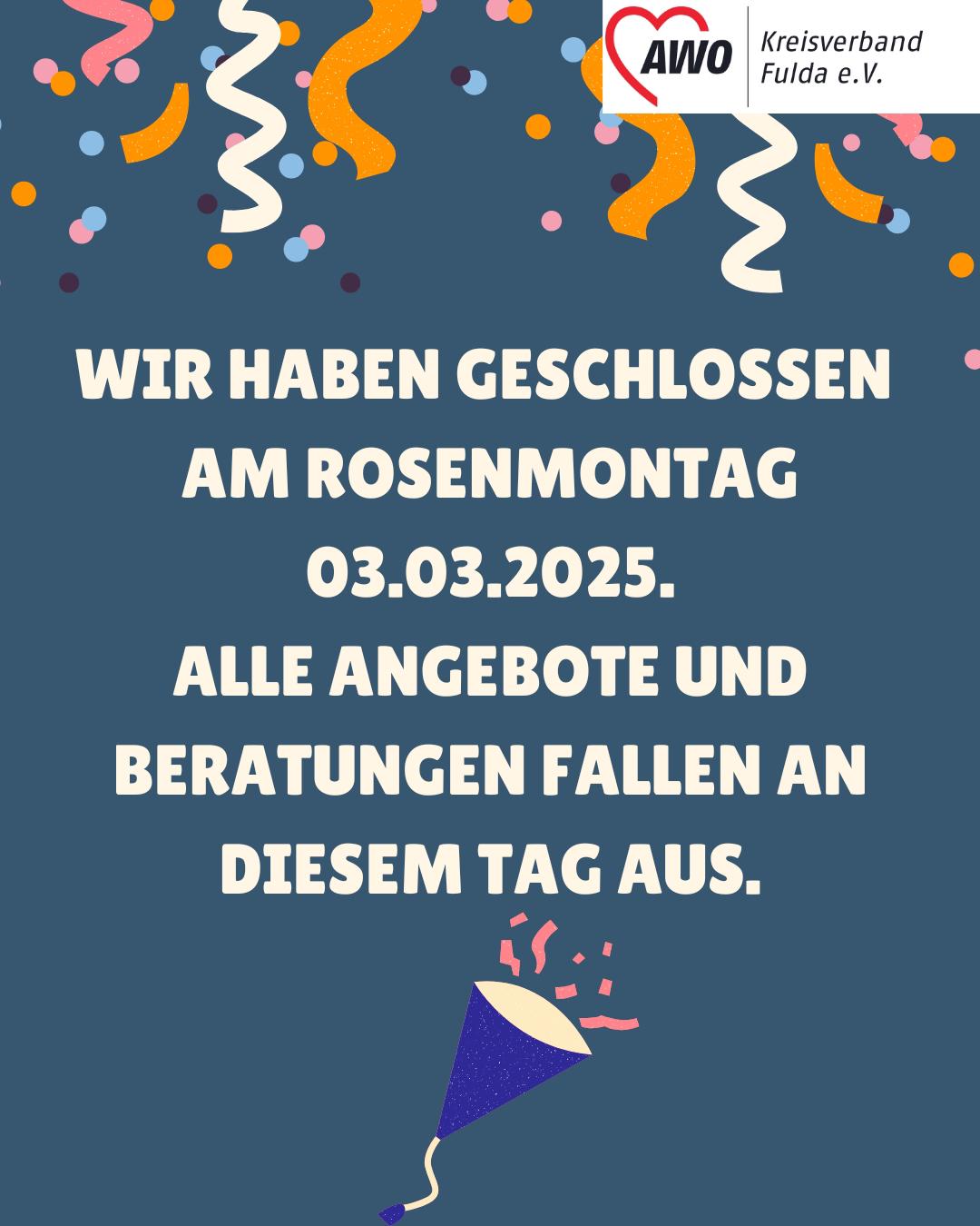 Am Rosenmontag, den 03.03.2025, bleiben unsere Standorte geschlossen und alle Angebote und Beratungen entfallen.
